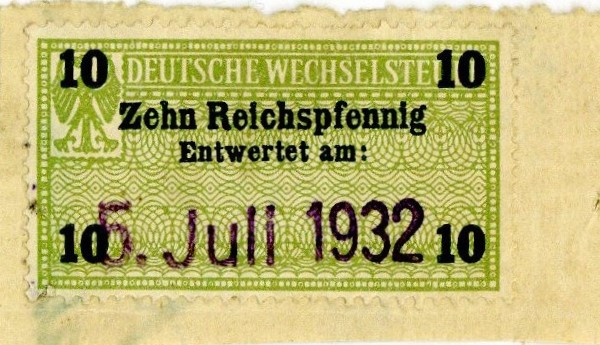 Título: 10 Deutsche Wechselstem : Zehn Reichspfennig entwertet am : 5 juli 1932