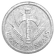 Período : Francia de Vichy (État Français) (1941 - 1944). Tipo de monedas : Monedas en circulación. Aleación : Aluminio. Canto: Liso. Forma: Redonda. |