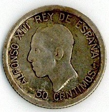 | Deskribapena: | Moneda de 50 cent. Anverso: Alfonso XIII - rey de España - 50 céntimos. Busto de Alfonso XIII.