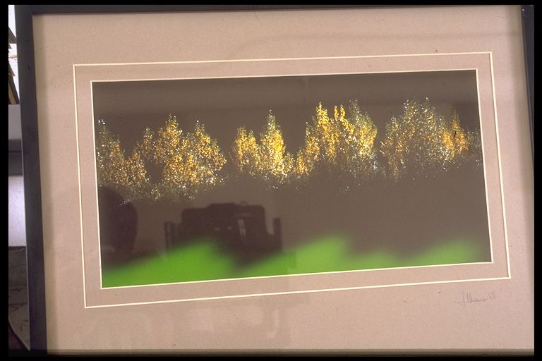 | Resumen: | Técnica: Positivado Soporte-Materia: Papel fotográfico Dimensiones: 19,5 X 38,5 cm. ; con marco: 42 X 52 cm. Fecha de ejecución: 1989 Firmado y fechado en ángulo inferior derecho. Fotografiado de árboles dorados con fondo negro y mancha verde inferior. Expurgado Nota: la pieza ya no pertenece al Patrimonio de la Fundación Vital. |