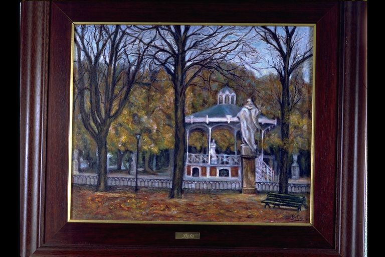 | Deskribapena: | Técnica: Óleo Soporte-Materia: Lienzo Dimensiones: 37 X 45 cm. ; con marco: 64 X 56 cm. Firmado y fechado en ángulo inferior derecho. Parque de La Florida con el quiosco de la música y su entorno con esculturas. Expurgado Nota: la pieza ya no pertenece al Patrimonio de la Fundación Vital. |