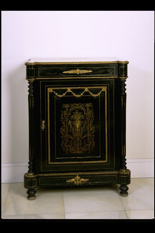| Resumen: | Técnica: Madera lacada Dimensiones: 107 X 81 X 40 cm. Fecha de ejecución: 1840-1850. Época isabelina. Mueble lacado en negro con adornos de latón dorados y encimera de mármol blanco. Expurgado Nota: la pieza ya no pertenece al Patrimonio de la Fundación Vital. |