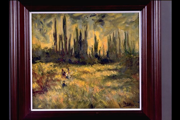 | Deskribapena: | Técnica: Óleo Soporte-Materia: Tabla Dimensiones: 44 X 48 cm. ; con marco: 67 X 72 cm. Fecha de ejecución: 1977 Paisaje con chopos al fondo y, en primer, término unas figuras humanas avanzando por el campo. Firmado y fechado en ángulo inferior derecho. Expurgado Nota: la pieza ya no pertenece al Patrimonio de la Fundación Vital. |