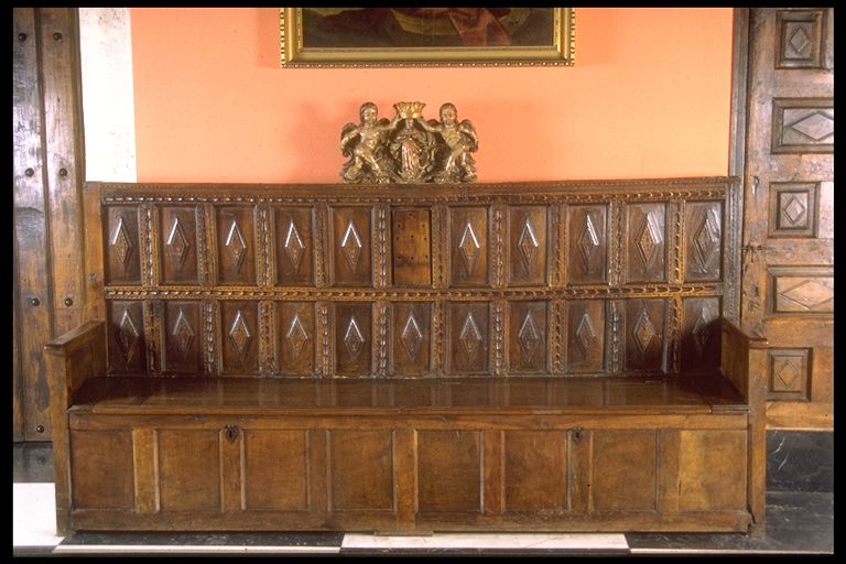 | Deskribapena: | Soporte-Materia: Madera Dimensiones: 125 X 225 X 54 cm. Fecha de ejecución: s. XVI-XVII Banco de gran tamaño con respaldo de 22 cuarterones, zócalo y asiento de tabla como tapa. Expurgado Nota: la pieza ya no pertenece al Patrimonio de la Fundación Vital. |