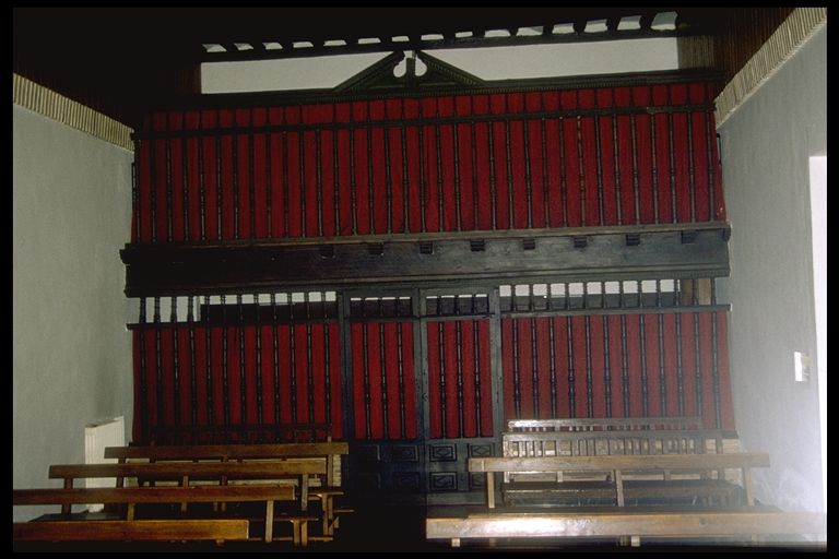 | Deskribapena: | Soporte-Materia: Madera Dimensiones: 600 X 300 cm. Reja de madera torneada en dos pisos con copete neoclásico. Expurgado Nota: la pieza ya no pertenece al Patrimonio de la Fundación Vital. |