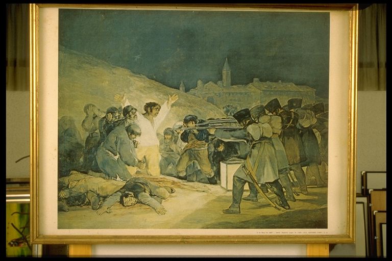 | Deskribapena: | Técnica: Lámina offset Soporte-Materia: Papel Dimensiones: 48 X 60 cm. ; con marco: 53 X 71 cm. Litografía copia del cuadro "Los fusilamientos del 3 de mayo" Firmado y fechado ángulo inferior izquierdo Expurgado Nota: la pieza ya no pertenece al Patrimonio de la Fundación Vital. |