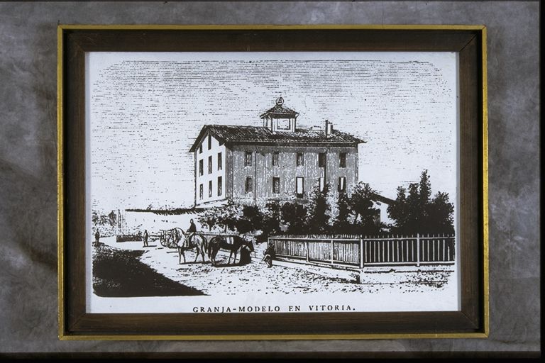 | Resumen: | Técnica: Fotografía bl. y n. Materia-soporte: Papel Dimensiones: 38,5 X 55 cm. ; con marco: 45 X 62 cm. Granja modelo de Arcaute/Arkauti. Fotografía de xilografía o grabado, ampliada por Fotografía Oscar. Expurgado Nota: la pieza ya no pertenece al Patrimonio de la Fundación Vital. |