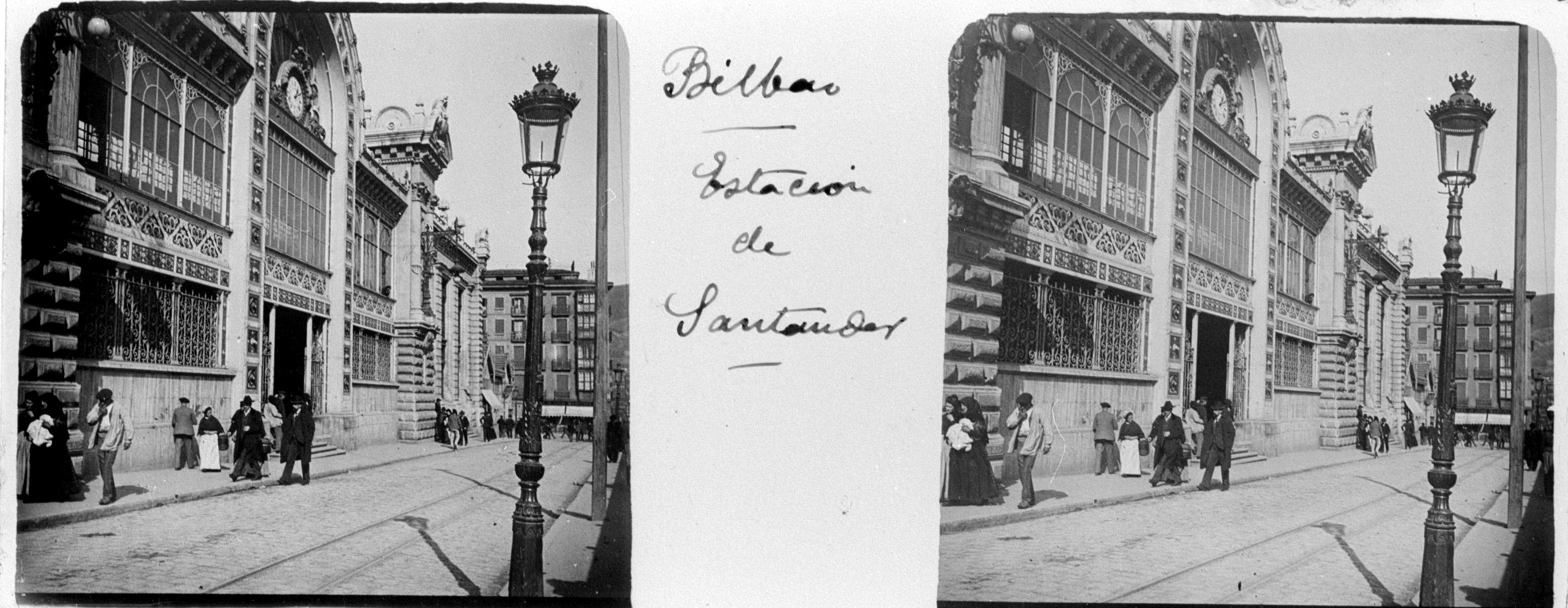 Resumen: Fachada de la Estación Concordia, también llamada estación de La Concordia y conocida coloquialmente como estación de Santander, en Bilbao. Fechada entre 1903 y 1927. Signatura C.V._ PAIS VASCO_NESTOR BASUALDO,S.1,SS.9