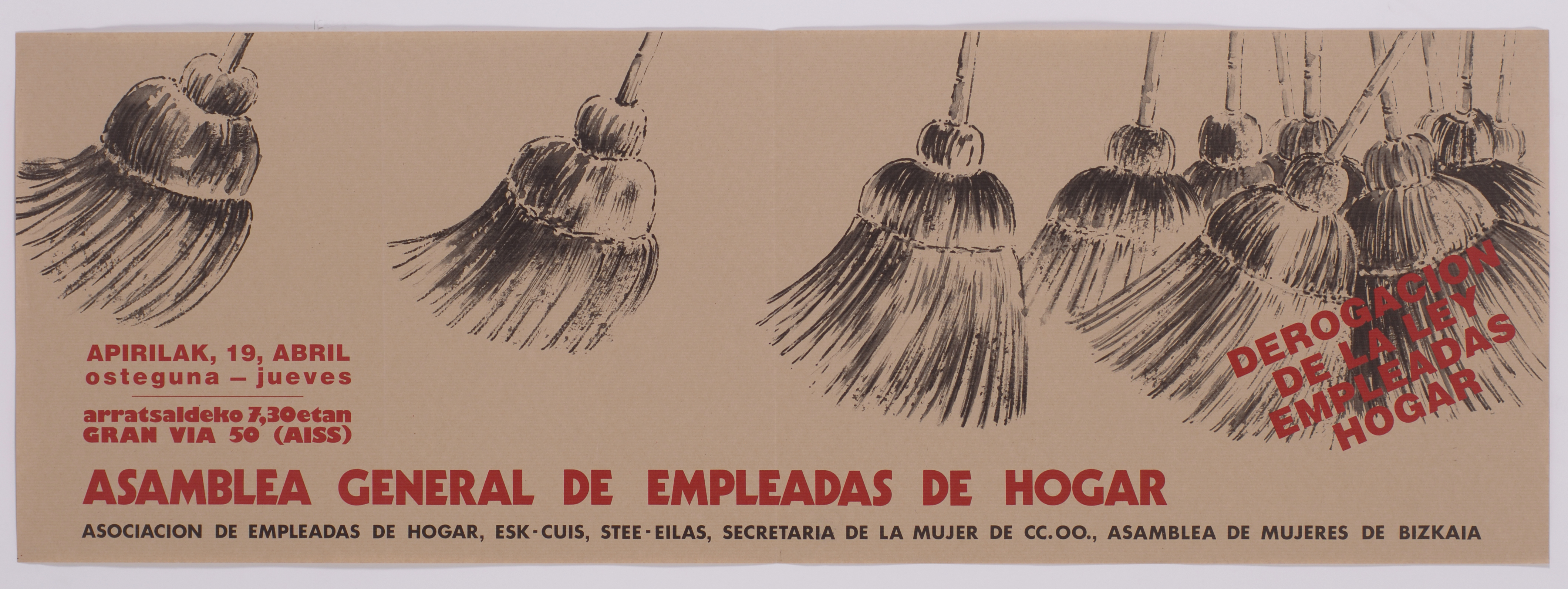 | Título: | Asamblea General de Empleadas de Hogar [Material gráfico] : derogación de la Ley Empleadas Hogar : apirilak, 19, abril, osteguna - jueves arratsaldeko 7'30etan Gran Via 50 (AISS) : Asociación de Empleadas de Hogar, ESK-CUIS, STEE-EILAS, Secretaría de la Mujer de CC.OO., Asamblea de Mujeres de Bizkaia |