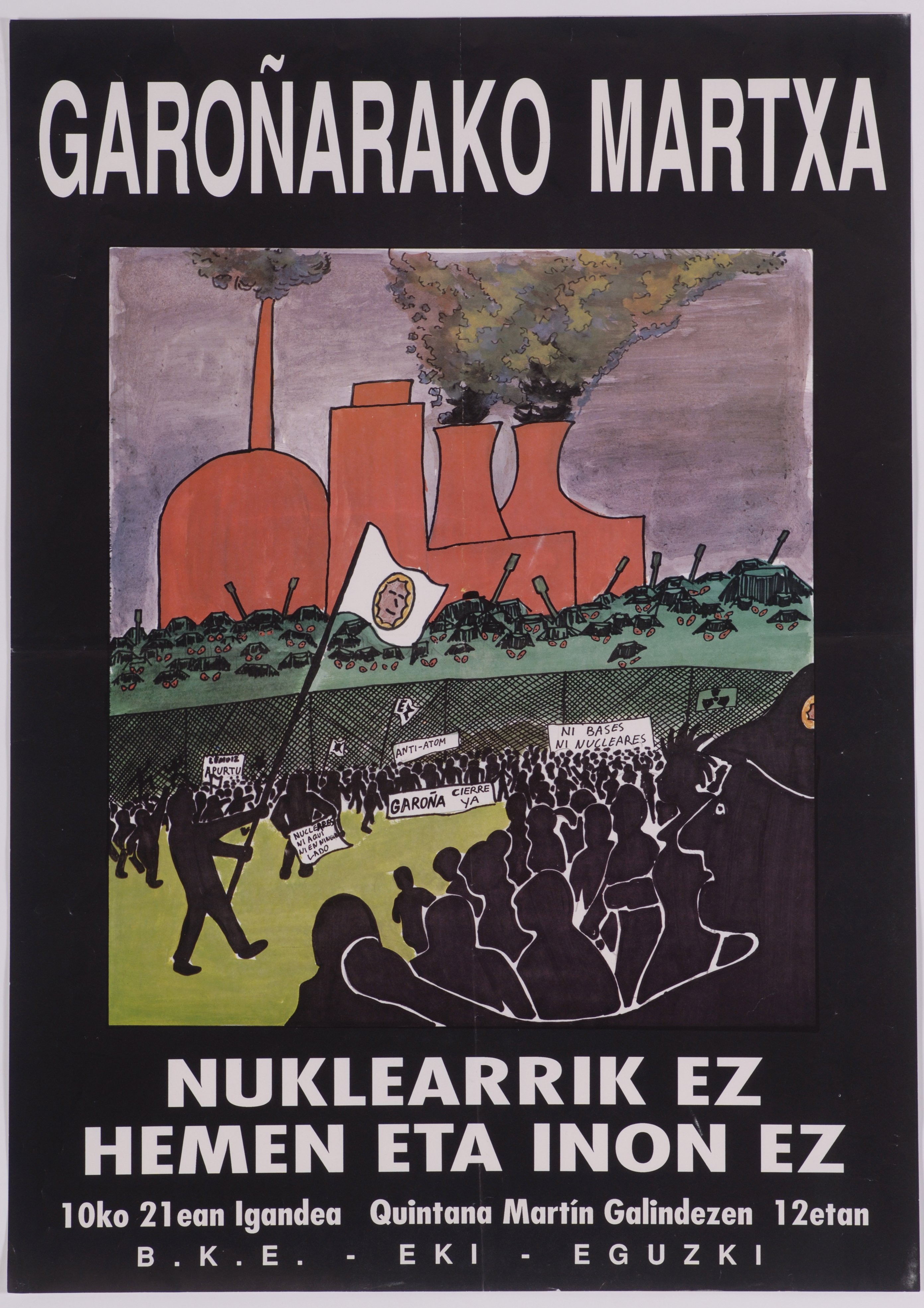 | Título: | Garoñako martxa [Material gráfico] : nuklearrik ez hemen eta inon ez : 10ko 21ean igandea : Quintana Martín Galindezen 12etan : B.K.E., EKI, EGUZKI. |