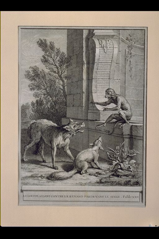 | Título: | Le loup plaidant contre le renard par devant le singe. Fable XXV [de La Fontaine] |