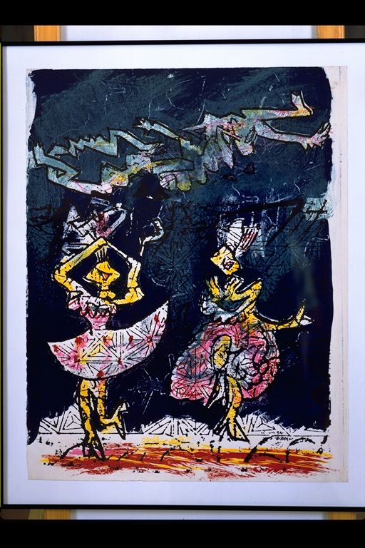 | Resumen: | Técnica: Grabado Materia-soporte: Papel Personajes femeninos en actitud de baile. |