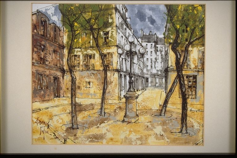 | Resumen: | Técnica: Serigrafía Materia-soporte: Tela Plaza de ciudad con farola en el centro. Firmado en ángulo inferior izquierdo. |