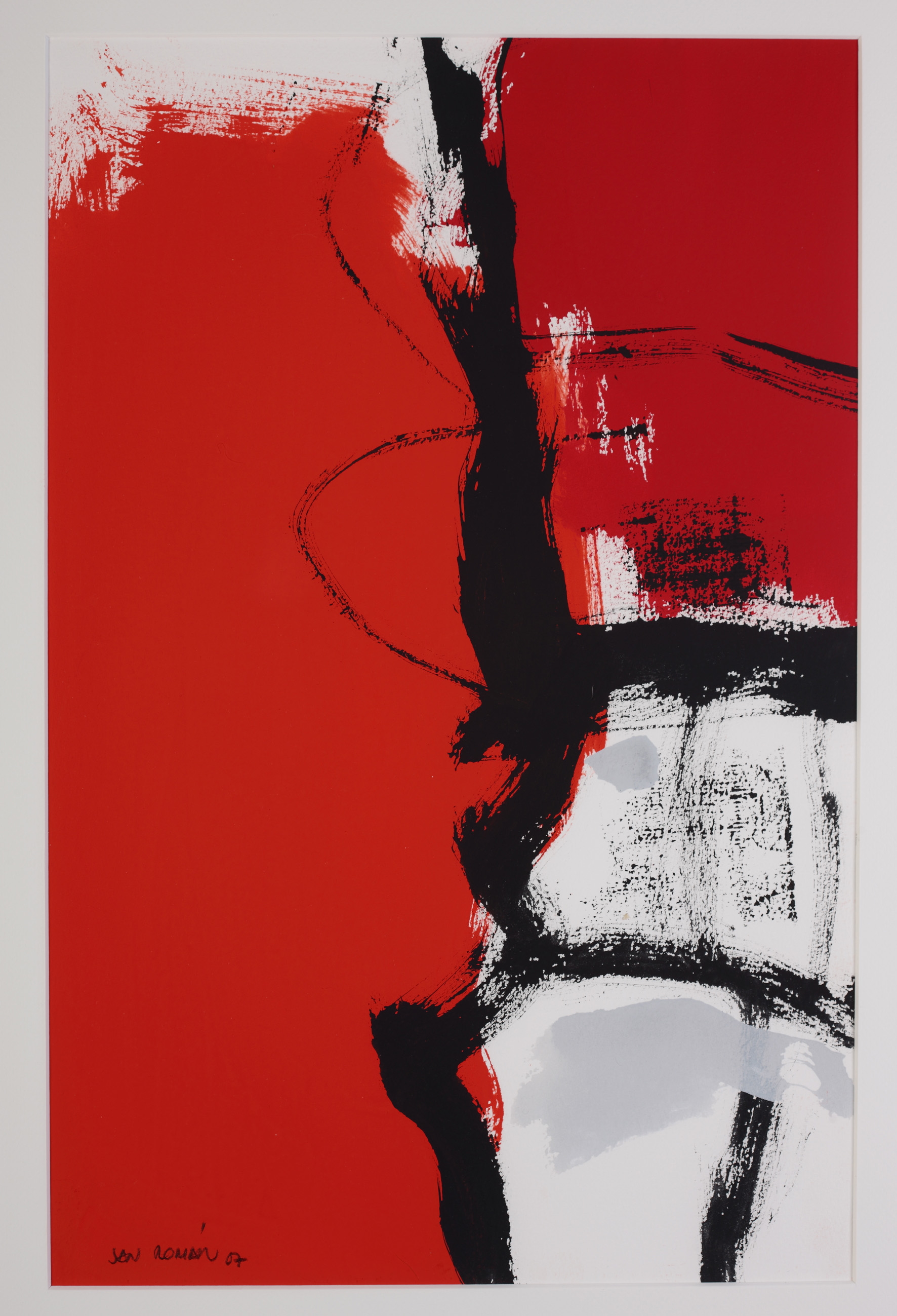 | Resumen: | Técnica: Guache Acrílico Materia-soporte: Papel Fecha de ejecución: 2007 Fondos rojos con grafismos negros. El conjunto de 20 obras individuales componen una sola obra. Nº de la obra en la serie: 17 Firmada en parte inferior derecha. |