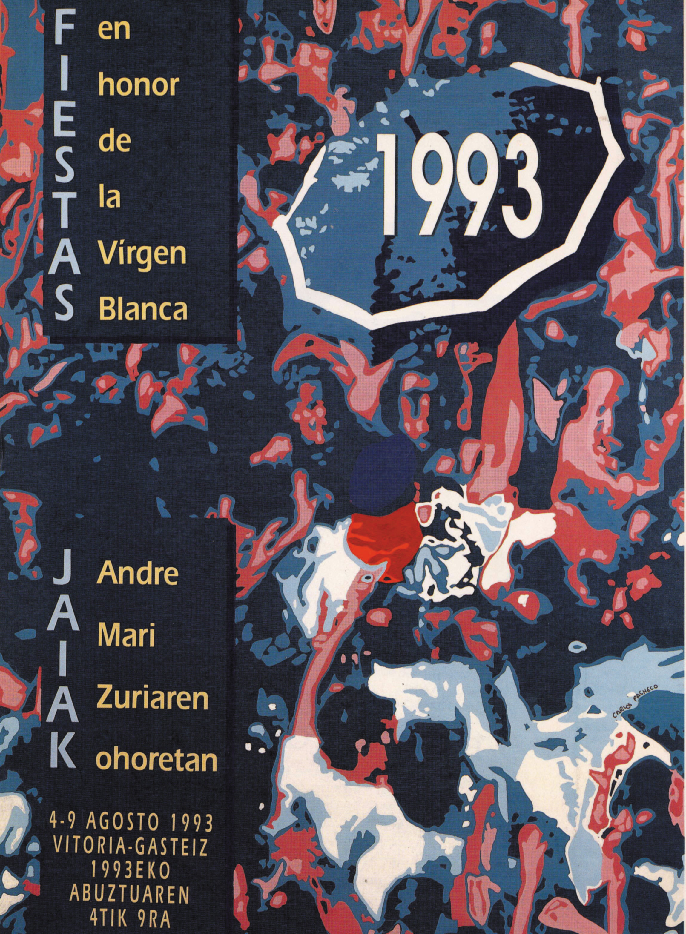 | Título: | Fiestas en honor de la Virgen Blanca [Material gráfico] : 1993 : 4-9 agosto 1993 Vitoria Gasteiz = Jaiak Andre Mari Zuriaren ohoretan : 1993eko abuztuaren 4tik 9ra / Carlos Pacheco. |