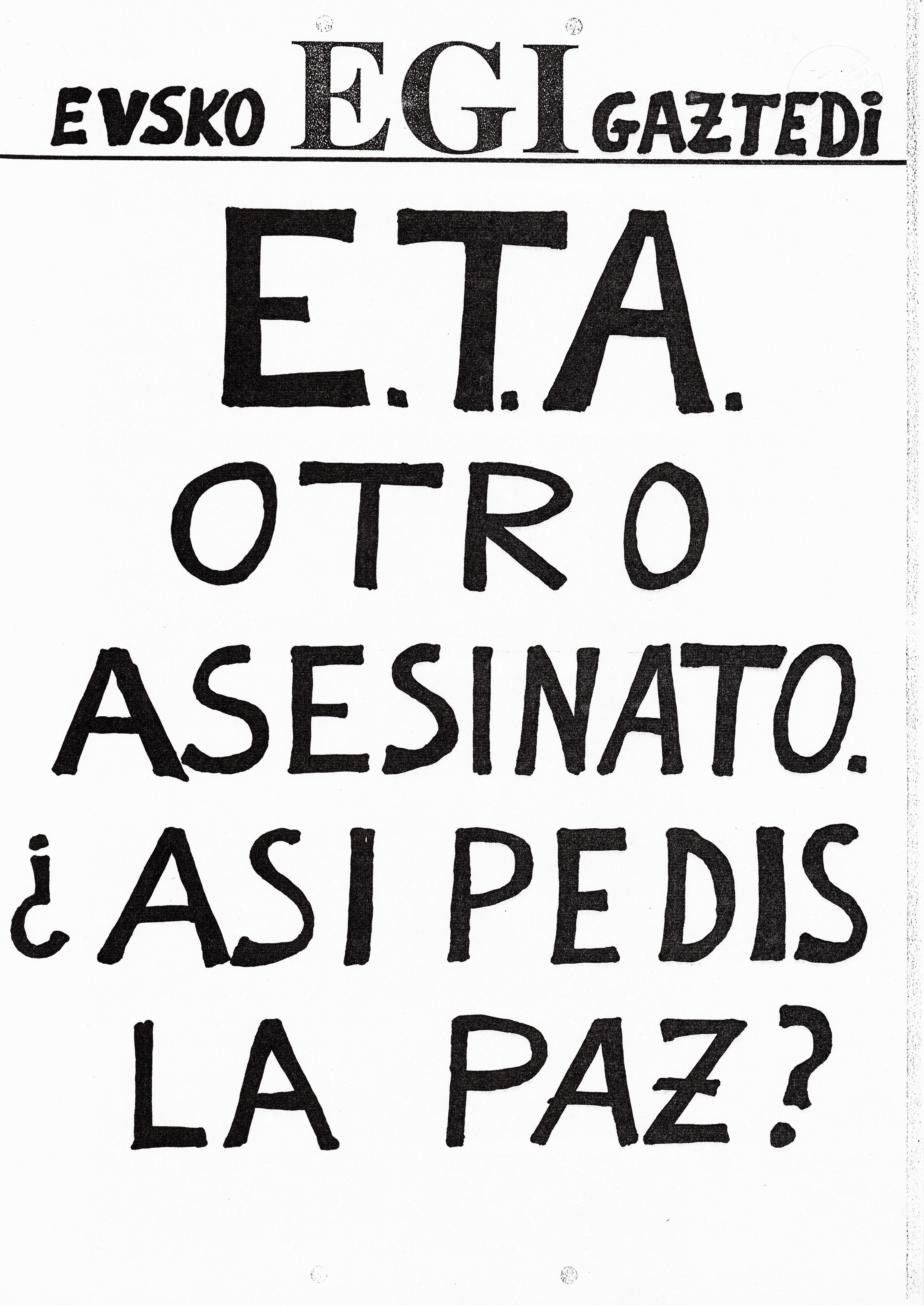 Título: E.T.A, otro asesinato [Material gráfico] : así pedis la paz? : Eusko EGI Gaztedi.