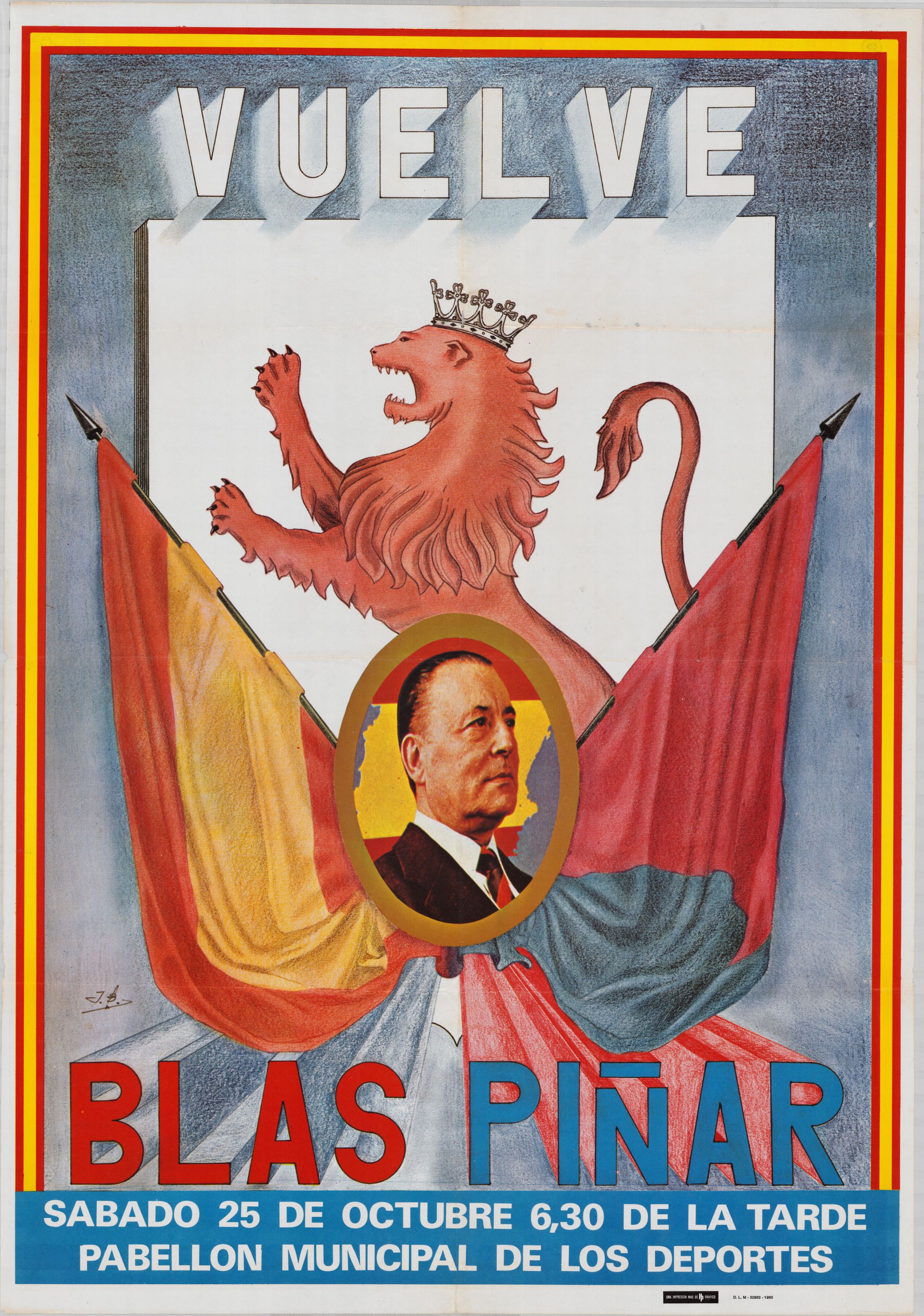 Título: Vuelve Blas Piñar [Material gráfico] : sábado 26 de octubre 6,30 de la tarde Pabellón Municipal de los Deportes / J.B.