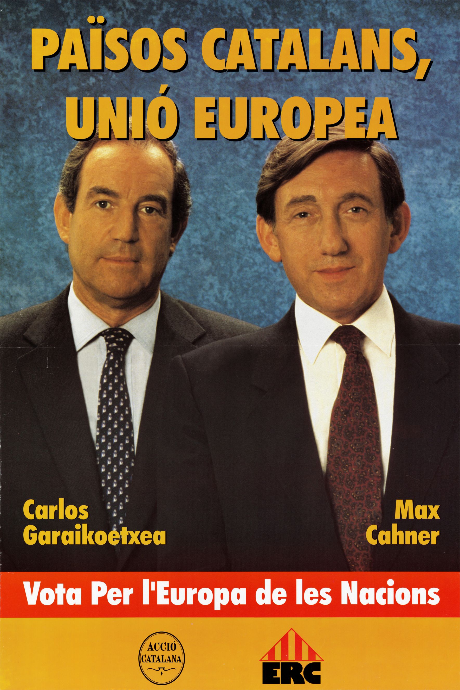 Título: Països catalans, unió Europea [Material gráfico] : Carlos Garaikoetxea : Max Cahner : vota per l'Europa de les Nacions : Acció Catalana : ERC