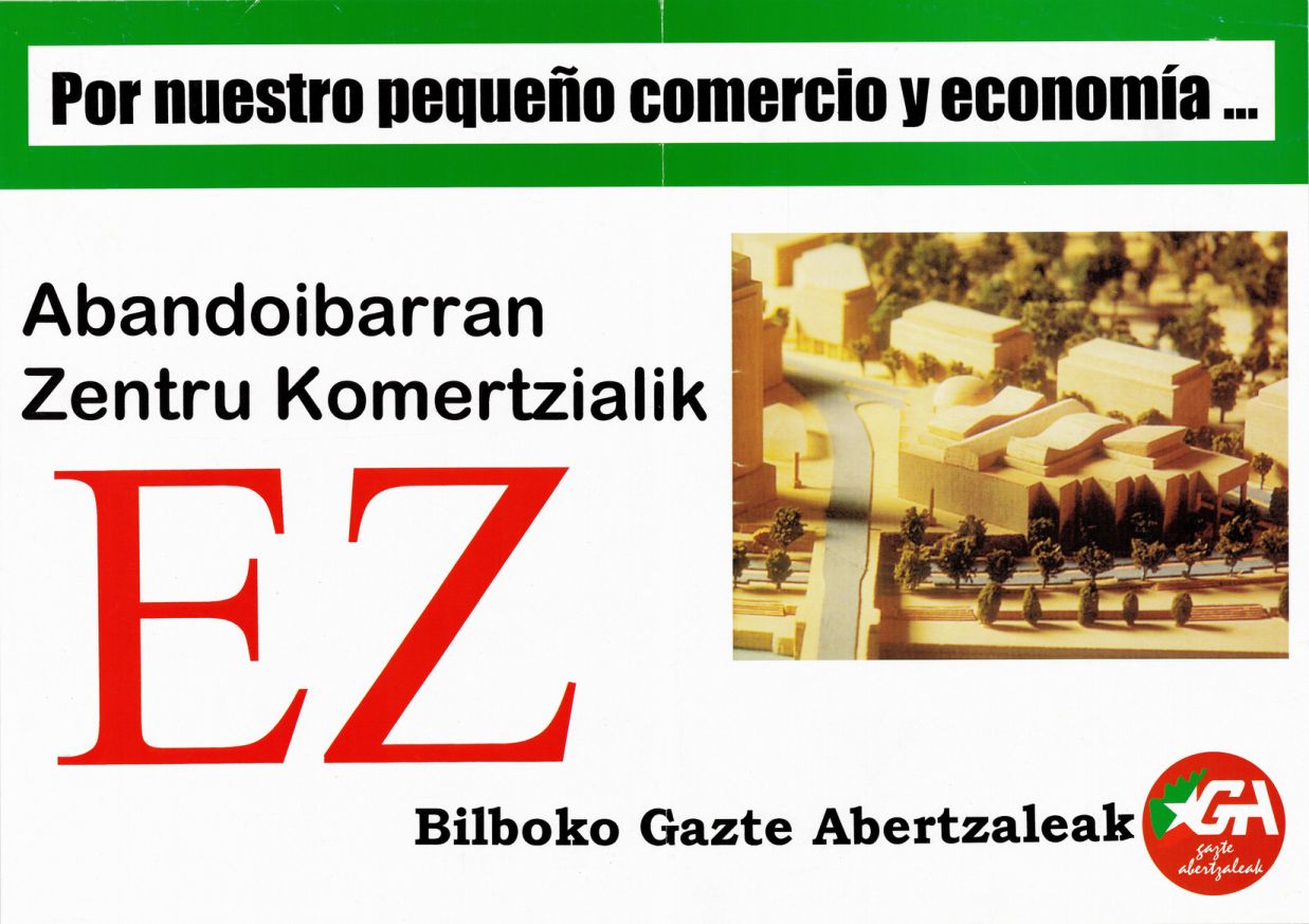 Título: Por nuestro pequeño comercio y economía__ [Material gráfico] : Abandoibarran zentru komertzialik ez : Bilboko Gazte Abertzaleak