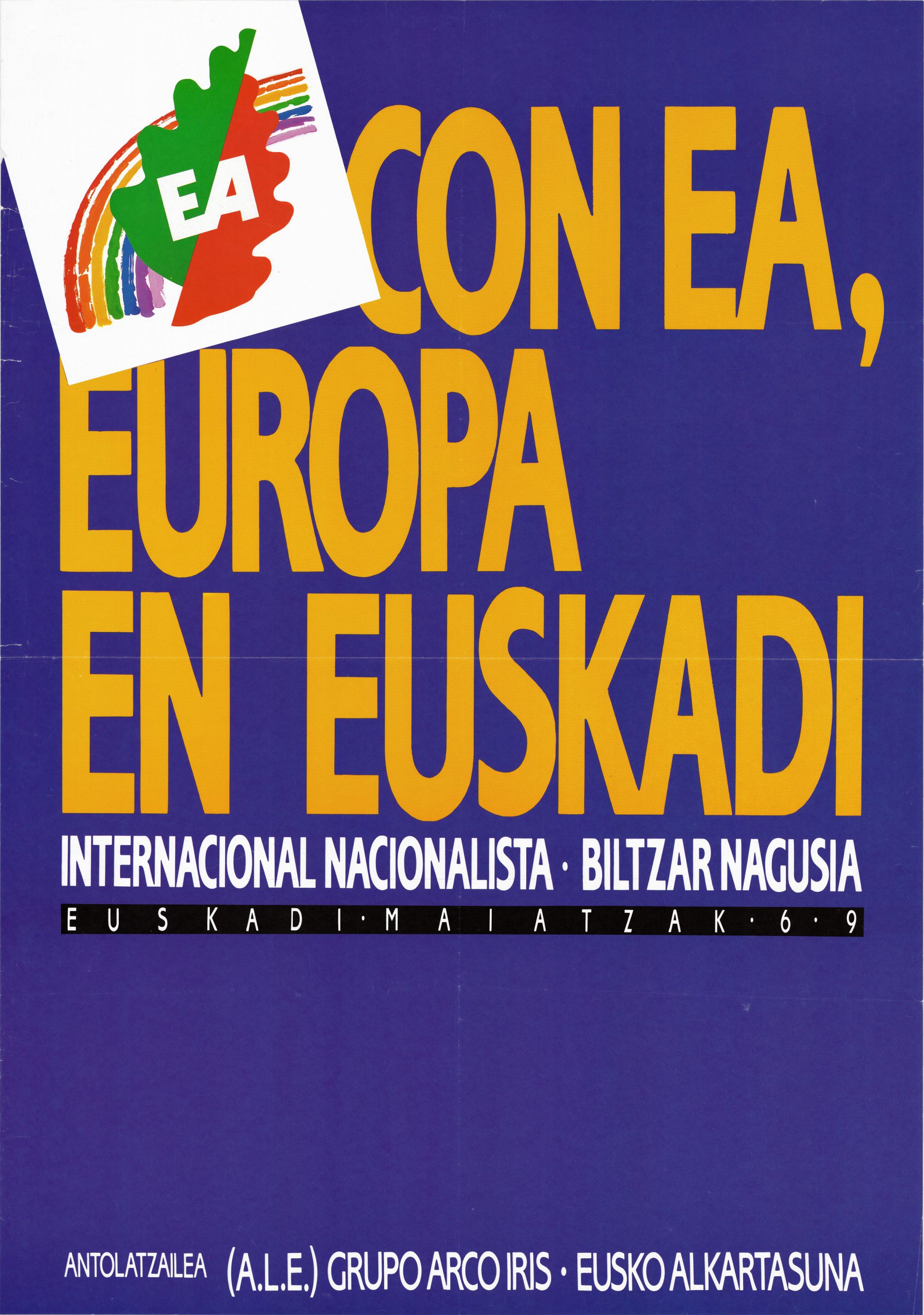 Título: Con EA, Europa en Euskadi [Material gráfico] : Internacional Nacionalista, Biltzar Nagusia : Euskadi, Maiatzak, 6-9 : antolatzailea (A.L.E.) Grupo Arco Iris, Eusko Alkartasuna