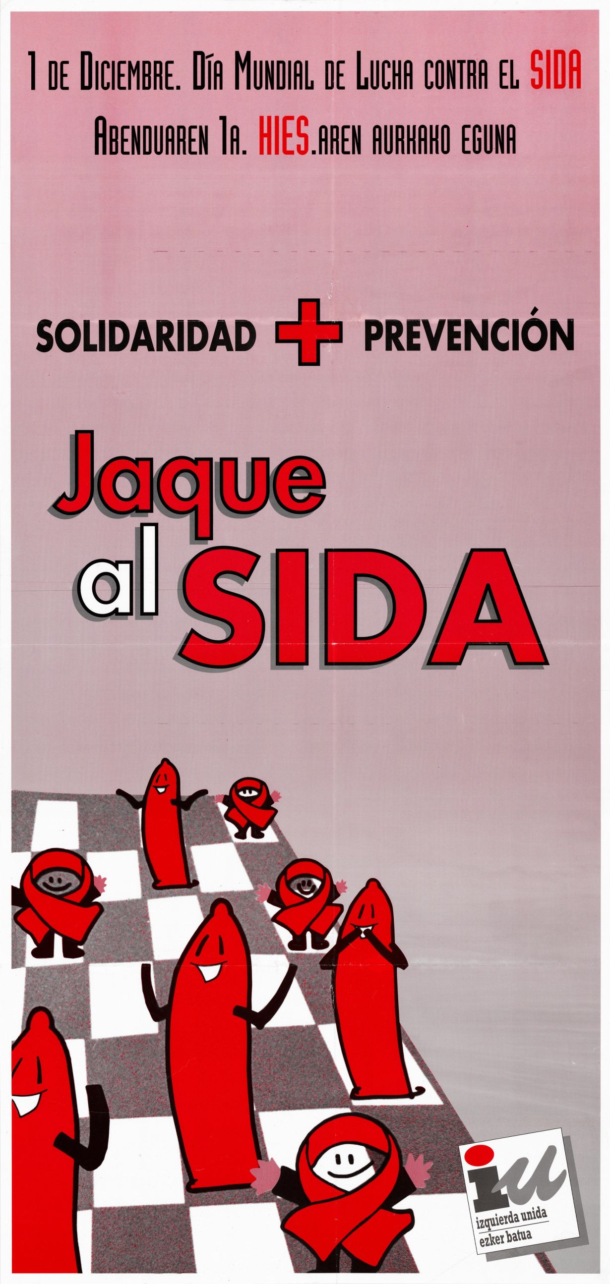 Título: Jaque al SIDA [Material gráfico] : 1 de diciembre, Día Mundial de Lucha contra el SIDA = Abenduaren 1a. HIES.aren Aurkadko Eguna : solidaridad + prevencion : IU Izquierda Unida Ezker Batua