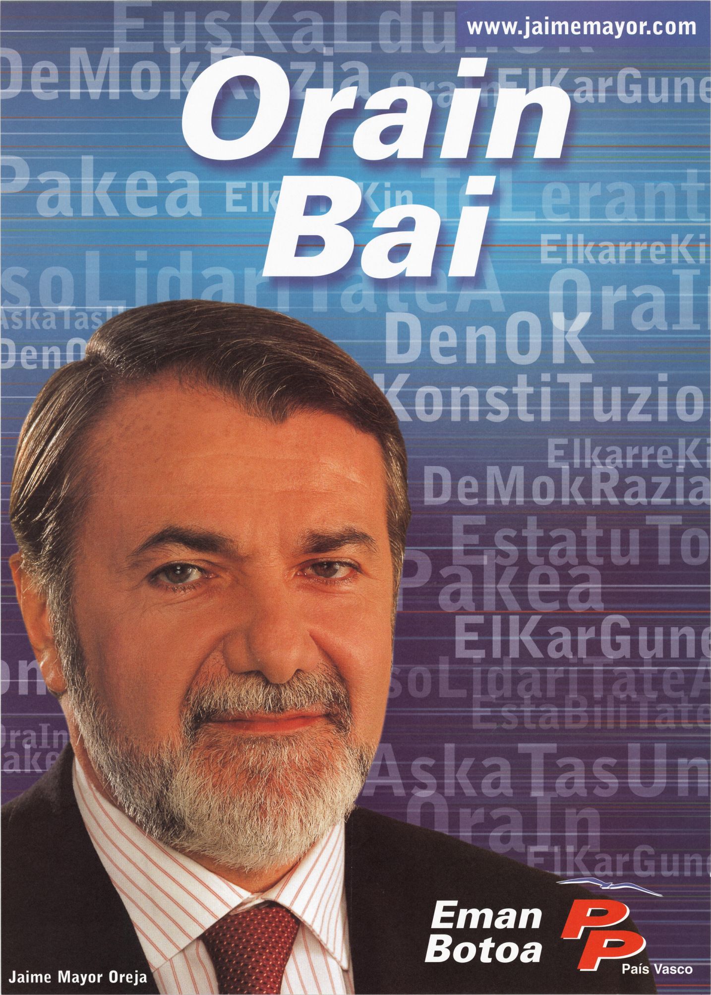 Título: Orain bai [Material gráfico] : eman botoa PP País Vasco : Jaime Mayor Oreja : www.jaimemayor.com