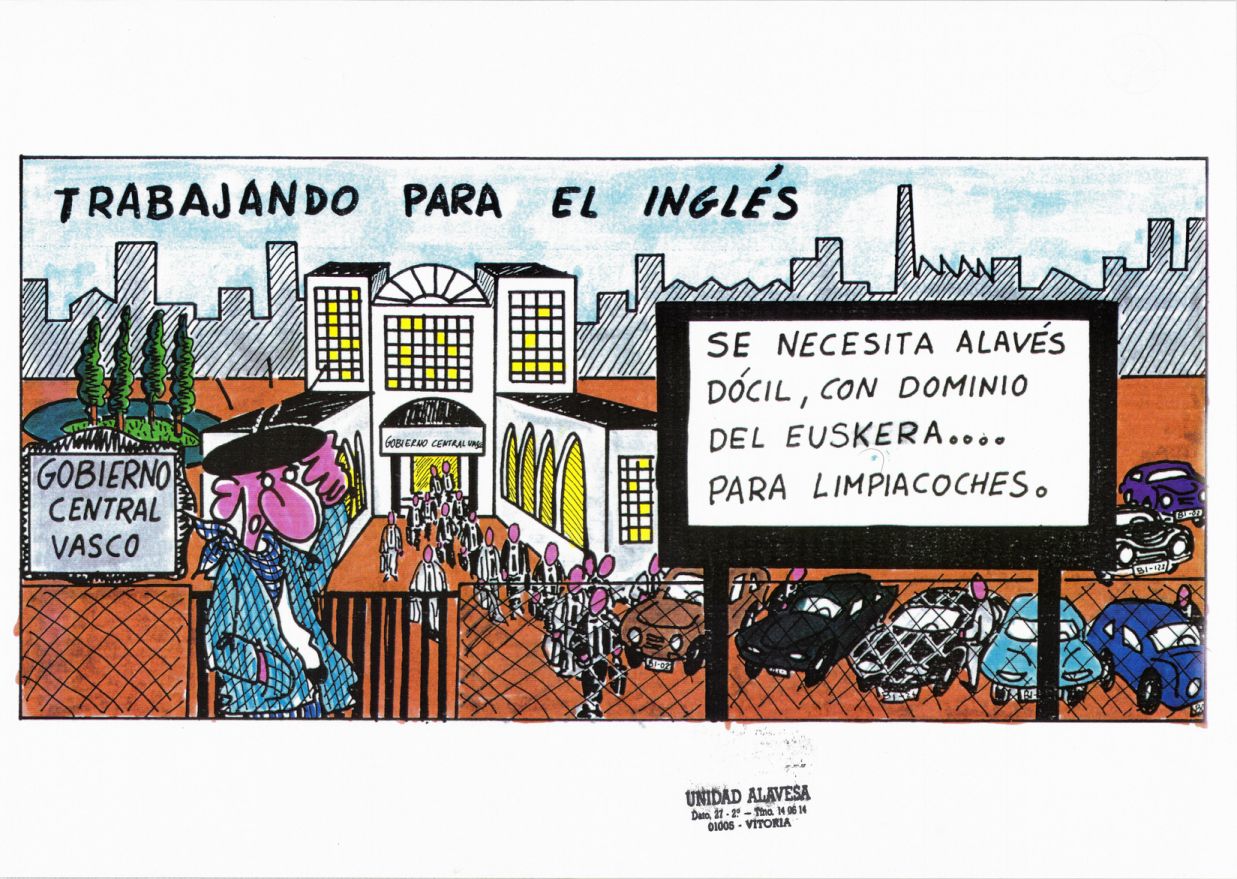 Título: Trabajando para el inglés [Material gráfico] : Gobierno Vasco : se necesita alavés dócil, con dominio del euskera__ para limpiacoches / Unidad Alavesa