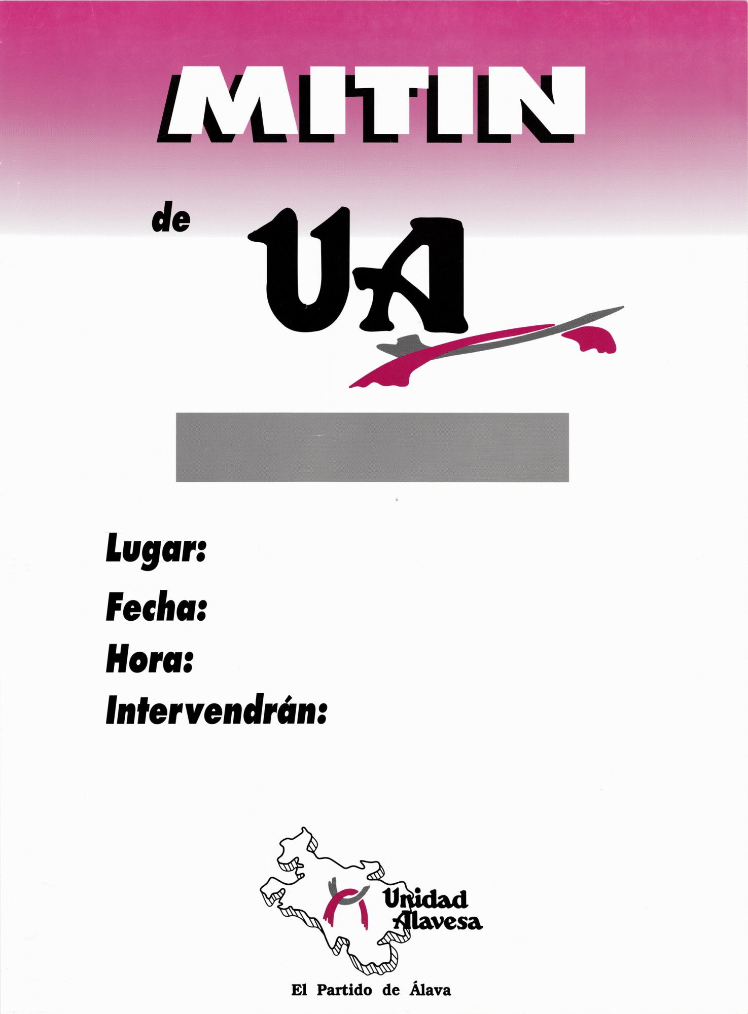 Título: Mitin de UA [Material gráfico] : lugar, fecha, hora, intervendrán : Unidad Alavesa el partido de Álava