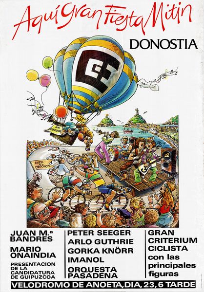 Título: Aquí gran fiesta mitin [Material gráfico] : Donostia : Juan Ma. Bandrés, Mario Onaindia, presentación de la candidatura de Guipuzcoa... Velódromo de Anoeta, día, 23, 6 tarde