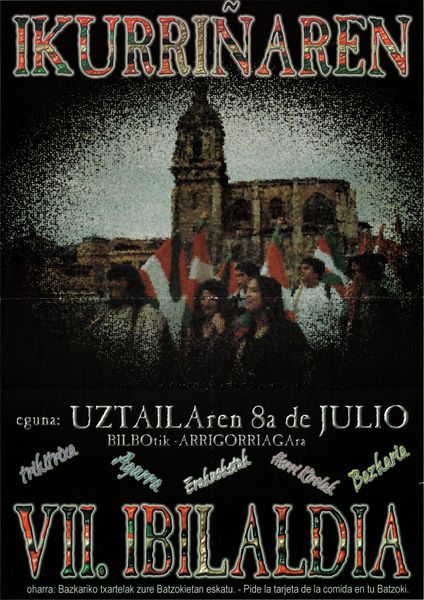 Título: Ikurriñaren VII. Ibilaldia [Material gráfico] : eguna, uztailaren 8a de julio Bilbotik-Arrigorriagara : trikitrixa, agurra, erakusketak, herri kirolak, bazkaria : oharra, bazkariko txartelak zure batzokietan eskatu = pide la tarjeta de la comida en tu batzoki