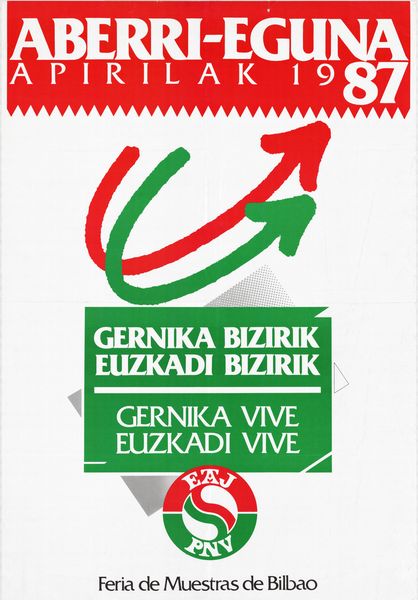 Título: Aberri-Eguna apirilak 1987 [Material gráfico] : Gernika bizirik, Euzkadi bizirik = Gernika vive, Euzkadi vive : Feria de Muestras de Bilbao : EAJ-PNV