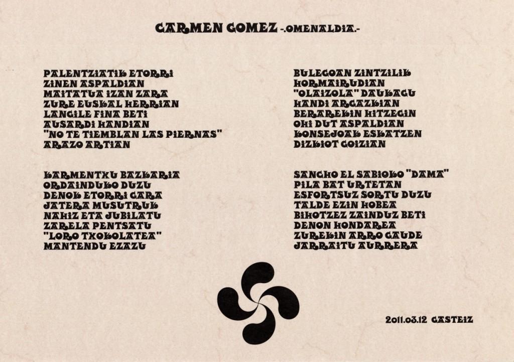 Título: Carmen Gómez -omenaldia- : 2011.03.12 Gasteiz / [Naroa Gazintza]