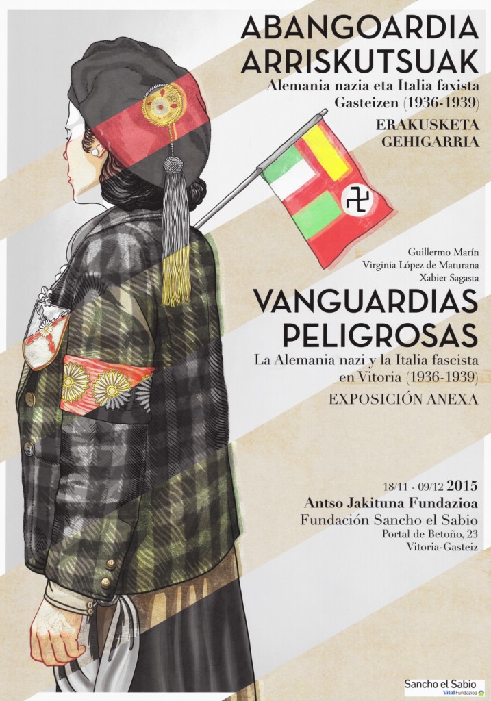 Título: Abangoardia arriskutsuak [Material gráfico] : Alemania nazia eta Italia faxista Gasteizen (1936-1939) : erakusketa gehigarria : Guillermo Marín, Virginia López de Maturana, Xabier Sagasta = Vanguardias peligrosas : la Alemania nazi y la Italia fascista en Vitoria (1936-1939) : exposición anexa : 18/11-09/12 2015 Antso Jakituna Fundazioa-Fundación Sancho el Sabio... / [Xabier Sagasta]