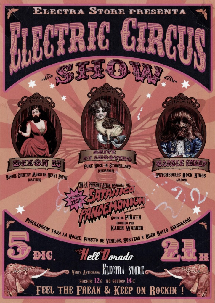 Título: Electric Circus Show [Material gráfico] : Dixon II, Drive By Shooting, Marble Sheep + (estreno del corto) Satánico Pandemonium / Paula Murillas