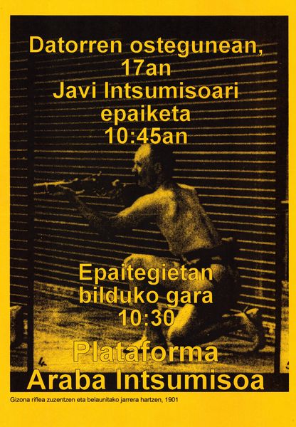 | Título: | Datorren ostegunean 17an Javi intsumisoari epaiketa 10:45 etan [Material gráfico] : epaitegietan bilduko gara 10:30 |