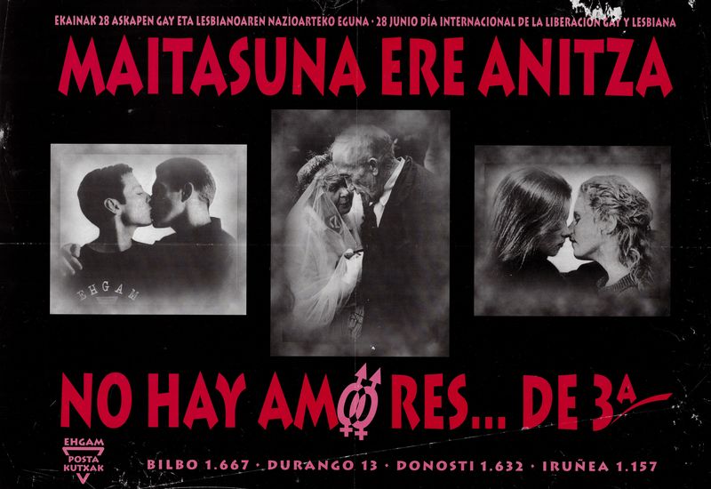 Título: Ekainak 28 Askapen Gay eta Lesbianoaren Nazioarteko Eguna [Material gráfico] : maitasuna ere anitza = 28 junio Día Internacional de la Liberación Gay y Lesbiana : no hay amores... de tercera