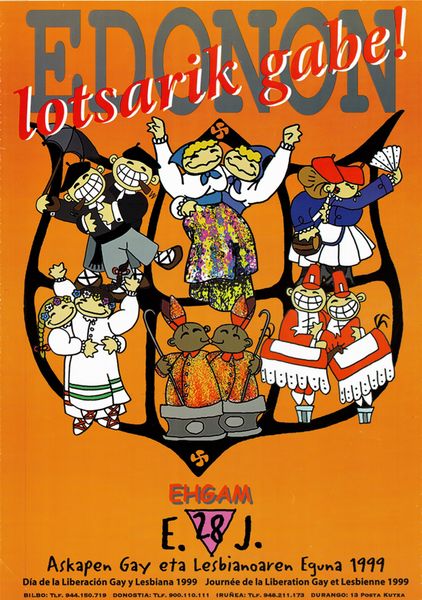 Título: Edonon lotsarik gabe! [Material gráfico] : EHGAM e. 28 j. : Askapen Gay eta Lesbianoaren Eguna 1999 = Día de la Liberación Gay y Lesbiana 1999 = Journée de la Liberation Gay et Lesbienne 1999