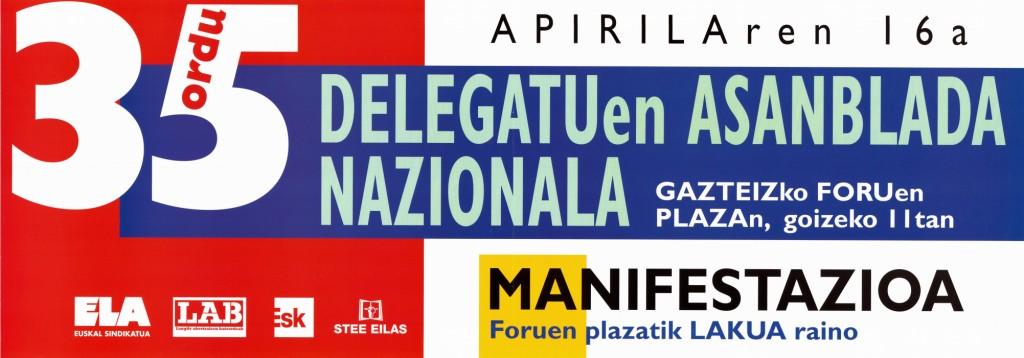 Título: Apirilaren 16a [Material gráfico] : 35 ordu : delegatuen asanblada nazionala : Gazteizko Foruen Plazan, goizeko 11 eta...