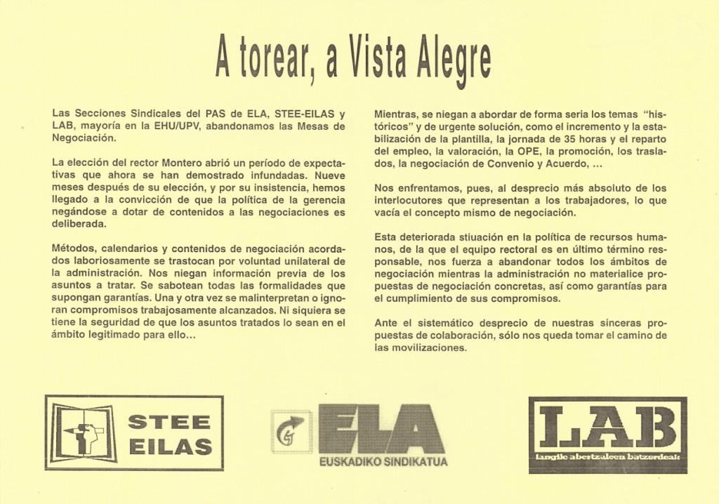 Contiene texto diciendo que los diferentes sindicatos han abandonado las mesas de negociación