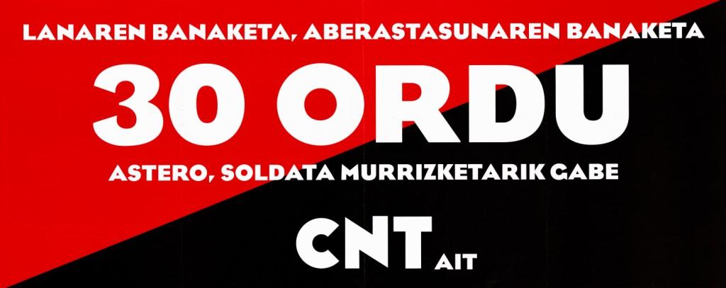 Título: 30 ordu astero, soldata murrizketarik gabe [Material gráfico] : lanaren banaketa, aberastasunaren banaketa : CNT-AIT