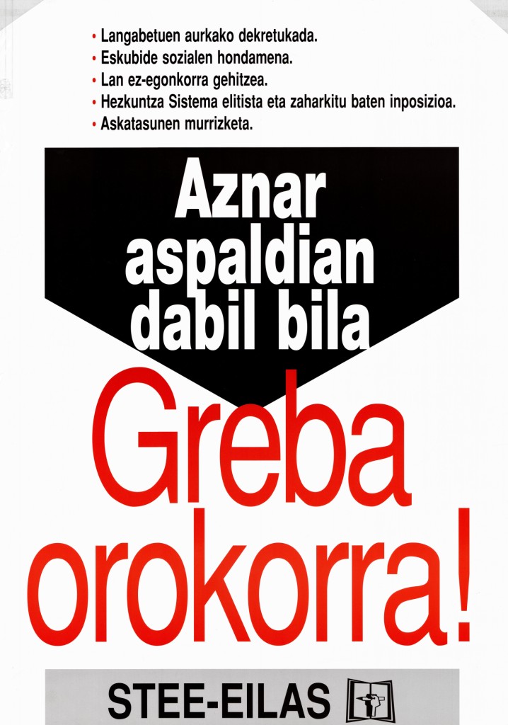 Título: Aznar aspaldian dabil bila [Material gráfico] : greba orokorra !