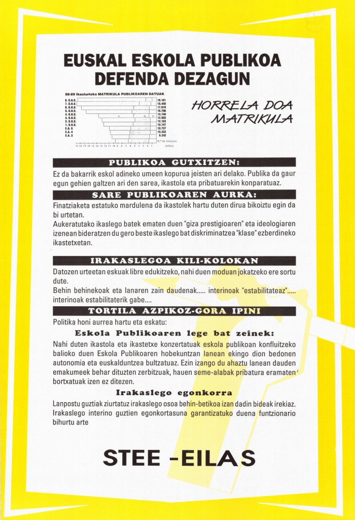 Título: Euskal eskola publikoa defenda dezagun [Material gráfico] : horrela doa matrikula...