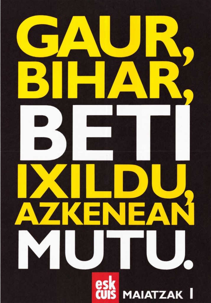 Título: Gaur, bihar, beti ixildu azkenean mutu [Material gráfico] : maiatzak 1