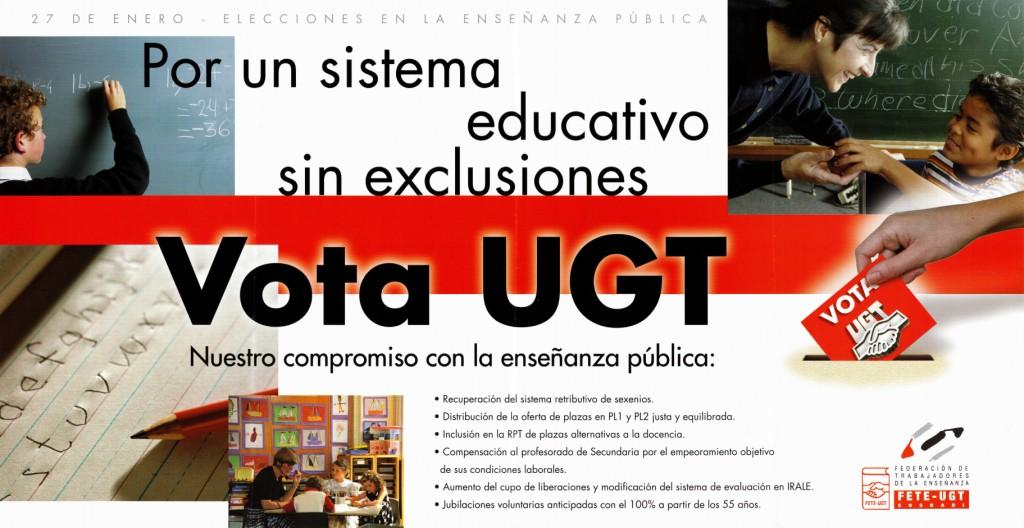 Título: 27 de enero elecciones en la enseñanza pública [Material gráfico] : por un sistema educativo sin exclusiones : vota UGT : nuestro compromiso con la enseñanza pública...