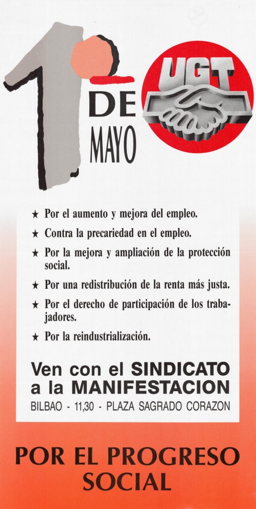 Título: 1o de mayo [Material gráfico] : UGT : por el aumento y mejora del emplero : contra la precariedad del empleo : por la mejora y ampliación de la protrección social...