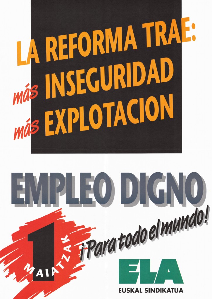 Título: 1 maitzak [Material gráfico] : la reforma trae más inseguridad, más explotación : empleo digno ¡ para todo el mundo !