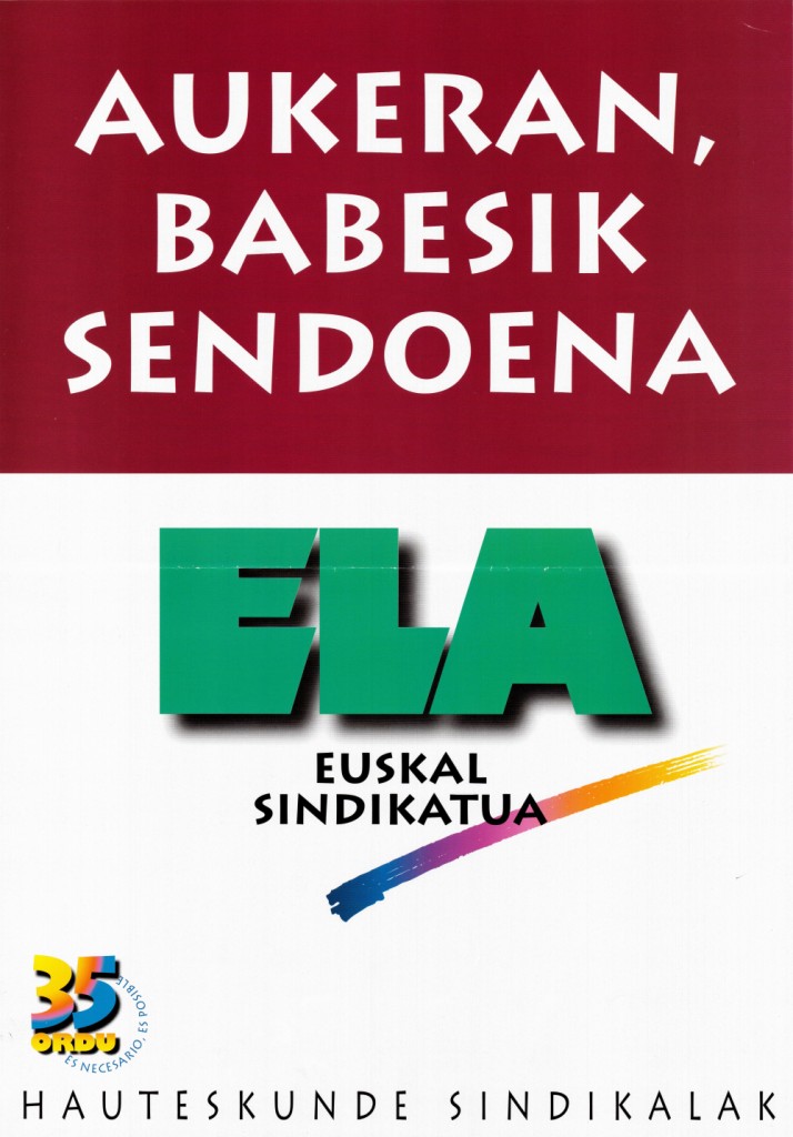 Título: Aukeran, babesik sendoena [Material gráfico] : ELA euskal sindikatua : hauteskunde sindikalak
