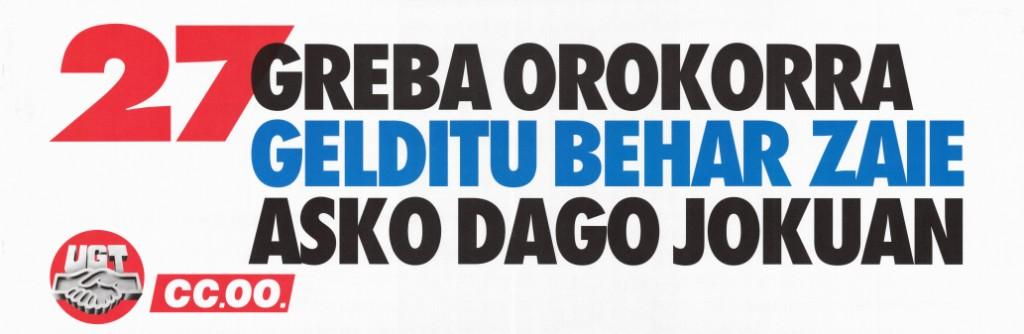 Título: 27 greba orokorra [Material gráfico] : gelditu behar zaie : asko dago jokuan
