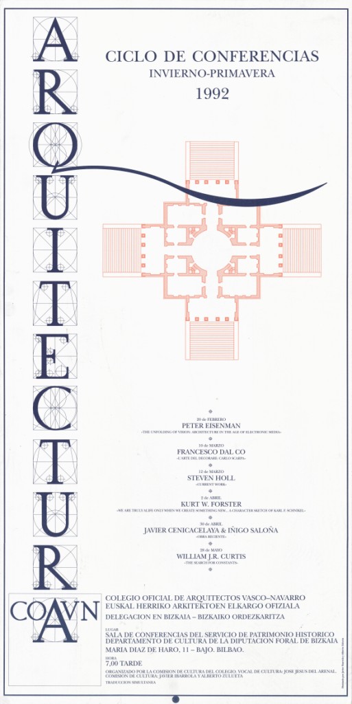 Título: Arquitectura COAVN [Material gráfico] : ciclo de conferencias invierno-primavera 1992 / diseñado por Javier Ibarrola y Alberto Zulueta