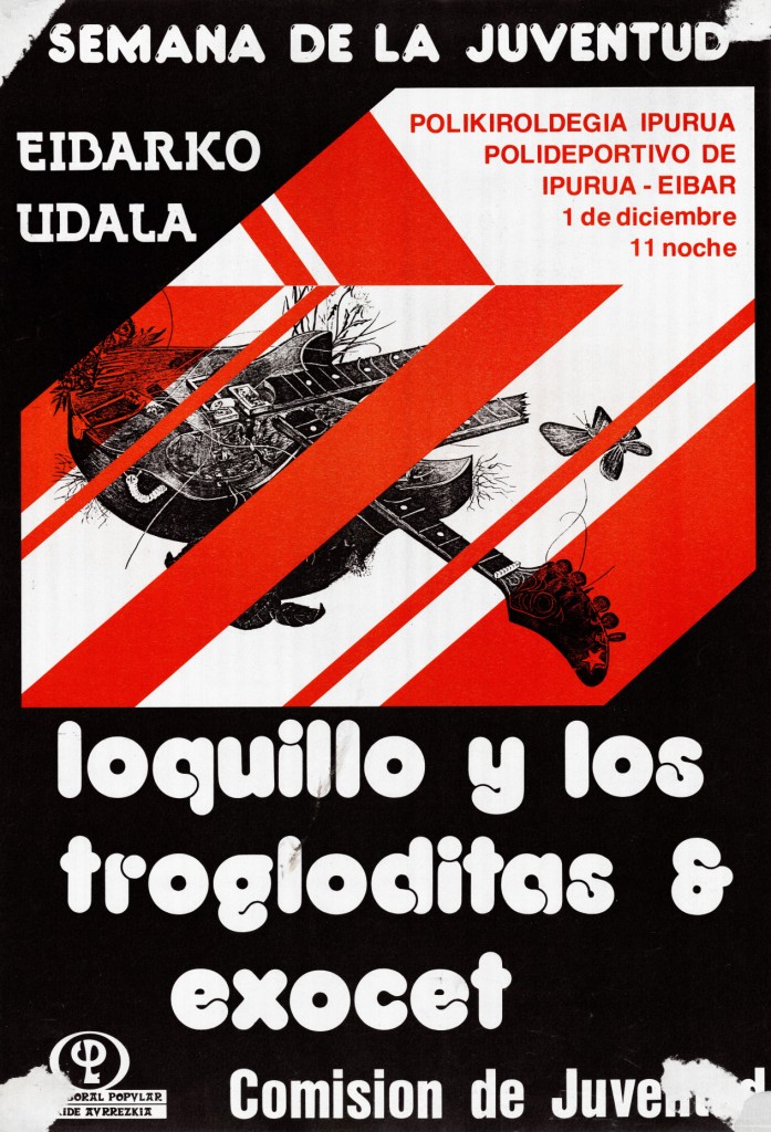 Título: Loquillo y los Trogloditas & Exocet [Material gráfico] : Semana de la Juventud Eibarko Udala : polikiroldegia Ipurua = polideportivo de Ipurua-Eibar, 1 de diciembre 11 noche : Comisión de Juventud